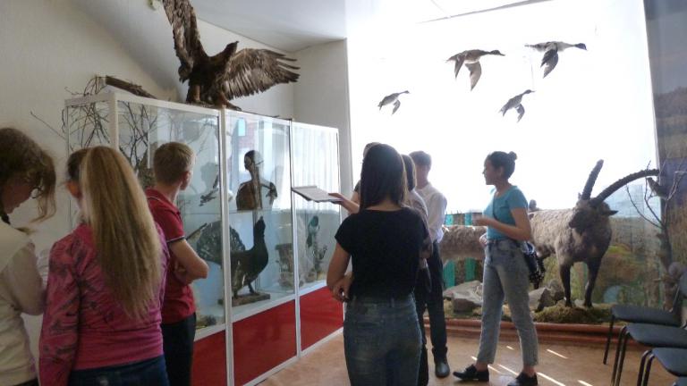 В малом зале Светлана Владимировна познакомила юных экскурсоводов с животным миром Ермаковского района и его яркими представителями здесь нас встретили волк, кабан, лось, другие животные и птицы. Этот удивительный уголок природы подарил нам минуты гармонии с природой, душевное тепло и наслаждение от увиденного.