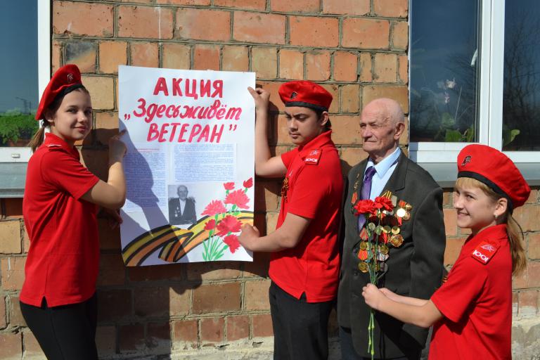 В эти особые, торжественные дни в Ермаковском центре дополнительного образования прошла акция «Здесь живет ветеран».В рамках данной акции юнармейцы изготавливают плакаты с информацией о каждом ветеране ВОВ 1941-1945 годов, проживающем в селе Ермаковское. На плакате размещается яркая, видимая издалека надпись – «Здесь живёт ветеран», его фотография, автобиография и военный путь.