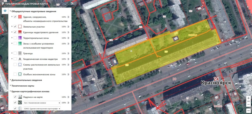 Найти необходимый объект недвижимости несложно, особенно если известен кадастровый номер (например - 24:50:ХХХХХХХ:17). Если же кадастровый номер неизвестен, имеется возможность поиска нужного объекта недвижимости по адресу.