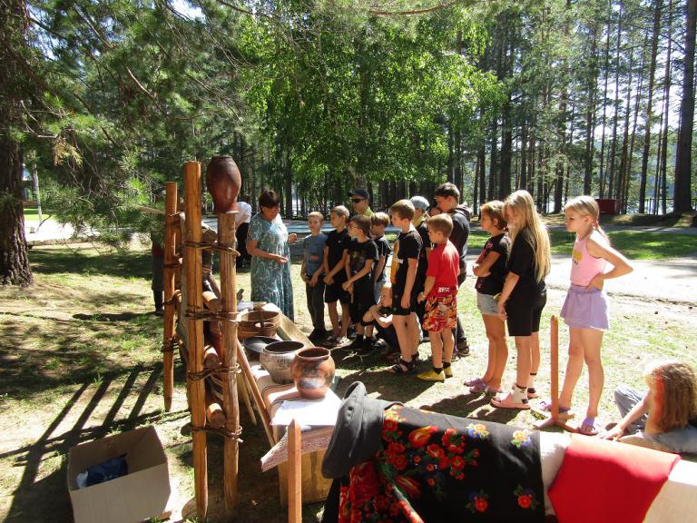 Для многих детей детского лагеря «Салют» это было первое и удивительное погружение в мир старинных предметов. В конце экскурсии дети с удовольствием отгадывали загадки, играли в подвижные игры и забавы с использованием скалки и хлебных лопат, фотографировались на фоне выставки.