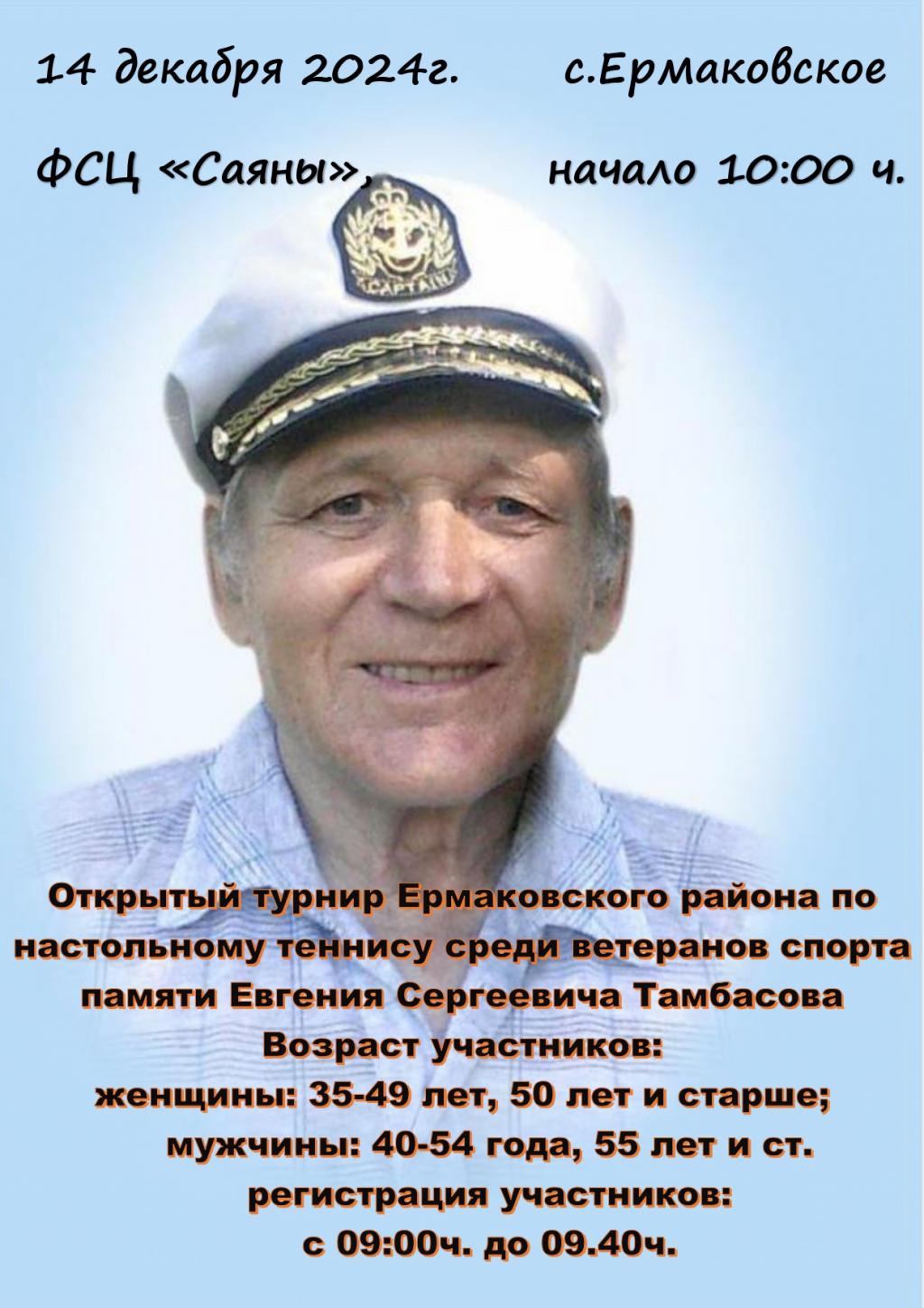 14 декабря ФСЦ "Саяны" приглашает Вас на открытый турнир Ермаковского района по настольному теннису среди ветеранов. Начало турнира в 10:00 ч. Регистрация участников с 09:00 до 09:40 ч.