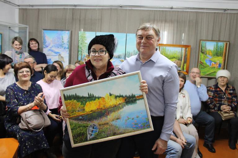 В ответном слове Виталий Васильевич сердечно поблагодарил организаторов выставки, и гостей мероприятия. Затем провел розыгрыш своей картины среди присутствующих – полученные на входе конверты были распечатаны, внутри были номерки, и Виталий Васильевич назвал свое любимое число. Счастливчиком оказалась Зинаида Николаевна Копьёва – выигранную картину она пообещала повесить в своем кабинете, чтобы каждый мог полюбоваться творчеством художника.