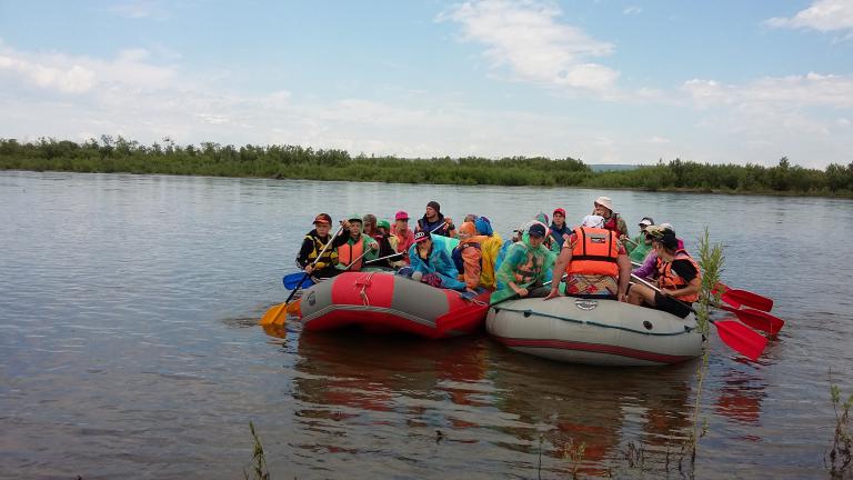 Программа третьего и четвертого дня смены была полностью посвящена водному маршруту по реке Туба. Водное путешествие началось в с. Усть-Шушь и продолжилось до с. Городок Минусинского района, с остановкой в одном из всемирно известных мест юга Красноярского края – Шалоболинской писанице. Все ребята воочию увидели памятник древнего наскального творчества. Главными задачами в походе для ребят стали сбор и обработка природно-географического и исторического материалов, изучение особенностей преодоления препятствий, встречающихся на туристском маршруте. Во время похода нашим ребятам юным экскурсоводам и краеведам было нелегко, погодные условия ухудшались, ветер сопровождался сильным ливнем и практически в экстремальных условиях нашему экипажу под чутким руководством нашего рафта спасателем Русланом необходимо было приложить максимум усилий, чтобы добраться до места назначения. Ребята сплотились и дружной командой подбадривая друг друга песнями и «гимном экскурсоводов» благополучно причалил к острову. Уставшие и мокрые насквозь, ребята под чутким руководством педагогов Татьяны Владимировны Гонтовой и Ирины Владимировны Макаренко распределив обязанности взялись за разведение костра, установку палатки для ночлега, и приготовление пищи на костре. Ребята и взрослые получили огромный заряд положительных эмоций, которыми делились в течение следующих дней смены.