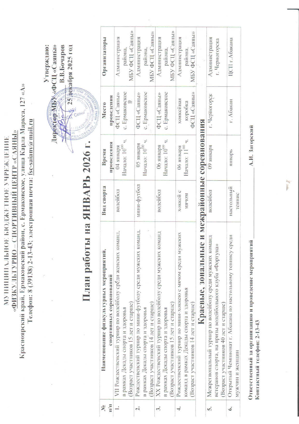 МБУ «Ермаковский центр физической культуры, спорта и туризма «Саяны»