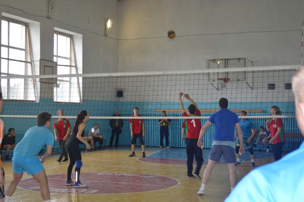 Волейбол - играют команда "Саяны" с. Верхнеусинское и команда Ермаковской районной больницы