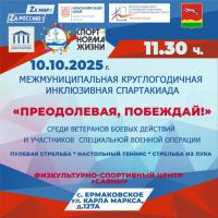МБУ ФСЦ "Саяны" приглашает Вас 10.10.2025 г. на межмуниципальную круглогодичную инклюзивную спартакиаду "Преодолевая, побеждай" Соревнования пройдут на базе ФСЦ "Саяны". Начало спартакиады в 11:30 ч.