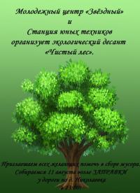 Молодёжный центр "Звёздный" и "Станция юных техников" организуют экологический десант "Чистый лес".