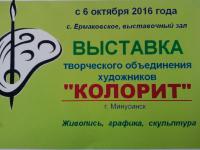Музейно-выставочный центр ЕРДК приглашает посетить выставку творческого объединения художников - "Колорит" (г. Минусинск). Открытие выставки с 06 октября 2016 года в выставочном центре с. Ермаковское. Вашему вниманию будут представлены - живопись, графика, скульптуры.