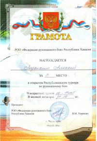 8-9 мая 2016 года в г. Черногорске прошли соревнования по рукопашному бою "Открытый республиканский турнир". Алексей Мусихин, весовая категория 36 кг., на этих соревнованиях занял III-е место в возрастная группа 10-11 лет. Так держать!!!