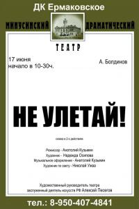 17 июня 2015 года в Доме культуры села Ермаковское состоится показ детского спектакля "Не улетай!". Начало в 10:30. Цена билета 100 рублей.