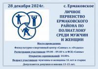 28.12.2024 г. ФСЦ "Саяны" приглашает Вас на Личное первенство Ермаковского района по полиатлону, а так же на Старт лыжных гонок, посвящённых открытию лыжного сезона.