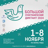 С 1 по 8 ноября 2024 года в девятый раз пройдет Всероссийская просветительская акция «Большой этнографический диктант», в рамках которой жители России и зарубежных стран, смогут оценить свои знания истории, культуры и традиций народов, проживающих в Российской Федерации.